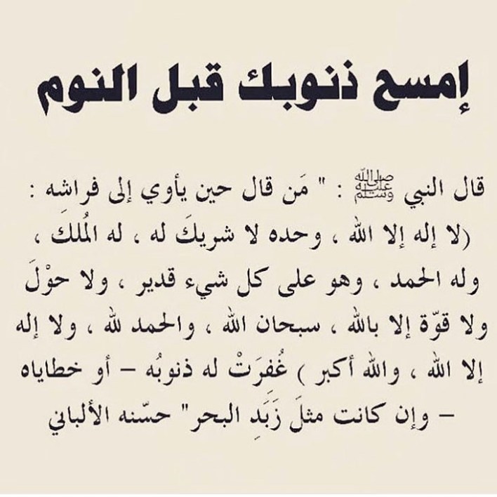 دعاء لراحة القلب والفكر قبل النوم: افضل دعاء قبل النوم قصير ادعية قبل النوم دعاء للنوم وراحة البالافضل دعاء قبل النوم قصير ادعية قبل النوم دعاء للنوم وراحة البالافضل دعاء قبل . دعاء قبل النوم مكتوب · بسم الله أمسينا وأصبحنا، أشهد أن لا إله إلا الله وأن محمد رسول الله وأن الجنة حق والنار حق وأن الساعة حق لاريب فيها، الحمد . (باسْمِكَ رَبِّ وضَعْتُ جَنْبِي وبِكَ . اللهم غارت النجوم وهدأت العيون وأنت حي قيوم لا تأخذه سنة ولا نوم، يا حي يا قيوم . دعاء للنوم وراحة البال اجمل ادعيه لراحه البال والنوم ووردز. دعاء النوم وراحة البال اجمل الادعيه قبل النوم و لراحه البال مجربه ورائعه . دعاء قبل النوم لراحة البال وحفظ النفس · «دَعْوةُ ذي النُّونِ لَا إِلَهَ إِلَّا أَنْتَ سُبْحَانَكَ إِنِّي كُنْتُ مِنَ الظَّالِمِينَ». 8186 زالدعاء واجب فكل وقت و فكل مكان فهو من وسائل تقرب الذي له تعالي ، و تختلف ادعيه فهي كثيرة ولكل دعاء سبب وحاجه خاصه به عند نوم يجبل. نوم الشخص وهو يذكر الله سبحانه وتعالى، . افضل دعاء قبل النوم قصير ادعية قبل النوم دعاء للنوم وراحة البال. افضل دعاء قبل النوم كامل مكتوب ويريح القلب نقدمه لكم عبر موقع شملول ، الراحة النفسية وراحة القلب وراحة البال هى أكثر الأمور . يُمكن للمسلم أن يتوجه إلى الله سبحانه قبل النوم بالدعاء راحةً للنفس، آتياً ذكرُ بعض الأدعية المأثورة: